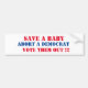 Adesivo Para Carro Salve um bebê abortar um democrata que os rejeite