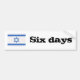 Bandeira israelita na esquerda com "seis dias" no texto preto no direito.