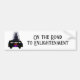 Na estrada para iluminar o adesivo budista para-choques com o símbolo Rainbow Om e Buda andando num ônibus de Hippie Retroativo. Legal humor budista para mostrar o seu lado Zen.