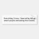 Autocolante no vidro traseiro com a indicação "tudo que eu sei, eu aprendi matando pessoas espertas e comendo seus cérebros."