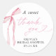 Essas etiquetas adesivas Pink Bow Bridal Shower Favor Stickers apresentam um elegante laço rosa para decorar seu chá de noiva ou brunch de noiva cor rosa bege. Essas etiquetas adesivas são um toque lindo para o seu chá de noiva com a nossa decoração de chá de noiva Blush Pink Bow She’s Tying the Knot. Essas etiquetas não apenas adicionam um acento elegante ao seu chá de noiva, como também são uma forma atenciosa de agradecer a sua família e amigos por presentear a noiva com amor e são ótimas para usar como brindes de sobremesa. Certifique-se de que cada pequeno detalhe do seu chá de noiva seja impecável com essas deliciosas etiquetas de brindes.