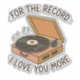 Design estética retro adesivo com um leitor de recordes vintage com uma doce mensagem romântica: "Para que conste, eu te amo mais." Perfeito para casais, amantes de música, e qualquer um que queira espalhar o amor de uma forma única. 🎶 💘