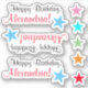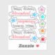 Este design de autocolante clássico apresenta a mensagem celebratória "Parabéns" e um nome editável. Também tem forma de estrela. Os adesivos personalizáveis como estes podem ser usados quando se deseja um feliz aniversário a alguém.
