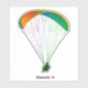 Este gráfico parapente é uma forma versátil de criar a um anúncio atraente para o seu negócio desportivo de aventura, identificar o seu equipamento voador ou como uma lembrança de férias de montanha recheadas de ação. O parapente está sentado no arnês abaixo de uma asa colorida, suspenso por linhas arco-íris e risers.