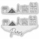 Esta folha de autocolante apresenta uma ilustração de uma linha do estilo silhueta do horizonte de Paris.