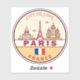 Design de arte parisiense minimalista e colorida, com monumentos e marcos da cidade na França.