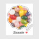 Um adesivo personalizado único para decoração, artesanatos, celebrações... Fotografia de jujubas doces, deliciosas, amarelas brilhantes, vermelhas, verdes, brancas, laranja, rosa e roxas.