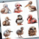 Adesivos de Passarinhos. © Escolha um Adesivo. Esta folha de adesivos tem uma variedade de passarinhos, incluindo um flamingo, uma avestruz, um pelicano, um patinho, uma garça, um papagaio-do-mar, uma coruja e mais.