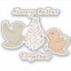 Imagem de solteiro de dois pássaros pastéis super fofinhos em um alimentador com o texto Sempre Melhor Juntos.