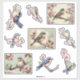 Uma folha com adesivos cortados personalizados de nove imagens aquarela com um pássaro em um ramo com flores.