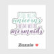 Na moda e divertido, este adesivo amovível giro e caprichoso é a maneira perfeita de adicionar algum talento ao seu computador, armário, caixa de violão ou qualquer outra coisa que você possa pensar, já que estes são vinil. Apresenta texto verde e roxo "andar com unicórnios natação com sereias."