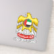 Vinheta Patriótica do emblema Nacional dos Emirados Árabes Unidos com a representação do emblema nacional dos Emirados Árabes Unidos. Abaixo do emblema nacional encontra-se a inscrição "EAU" feita em letras belas "Aceserif" e a cor preta. A inscrição está na parte inferior, infundida com o emblema nacional, mas pode ser livre de movimentos ou mesmo eliminada se desejar um design diferente. O adesivo nacional dos Emirados Árabes Unidos é um presente fantástico e interessante para qualquer ocasião. © 2021 PaísesDoMundo
