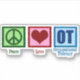 O adesivo de Terapia Ocupacional do Peace Love para o seu terapeuta ocupacional favorito. Um sinal de paz, coração, e as letras Para fazer um presente de excelente para todos os terapeutas profissionais em sua prática ou escritório