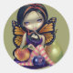 "Peach, Plum, Pear" - nomeado para uma das minhas músicas favoritas - apresenta uma bela fada com asas impressionantes como borboletas. Sentada em uma madeira suja, ela juntou algumas frutas escutadoras - uma pêssego, uma ameixa, e uma pera...... Feita a partir da minha própria pintura acrílica original.