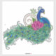 Pavão com flor fuchsia lotus e hena num pano de fundo azul claro