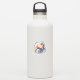 Bonito pinka, rosas azuis e flores em um pedaço de bolo de aniversário e uma xícara de café quente, aquarela, arte.