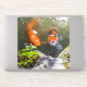 Peixes coloridos de carpa ou koi num lago de jardim superficial.