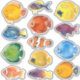 Este pacote de 13 adesivos apresenta peixes tropicais em aquarelas brilhantes.