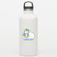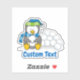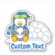 Um pequeno desenho animado de pinguim sentado segurando uma bola de neve. Texto personalizado.