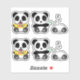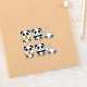 Três adoráveis pandas sentados ao lado um do outro. Um panda feliz está vestindo uma camiseta com "I Heart Panda" escrito nela. Outra é oferecer um bastão de bambu verde a um terceiro panda que adormeceu.
