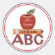 Este adesivo personalizado de professora tem um lugar para seu nome e para a nota que ela ensina. Há círculos na borda externa com uma maçã, lápis e ABC.