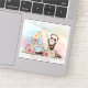 A beautiful, customizable sticker featuring a charming watercolor illustration of an adorable ferret peaking out from behind the elegant monogram letter 'A'. The letter is designed with ornate white scrollwork and is beautifully accented with soft pink roses, cream peonies, and green foliage against a pastel watercolor background. This sticker is perfect for adding a personalized, custom touch to laptops, planners, or party favors. It can be easily personalized by the customer to add their own name or text, making it a unique gift for ferret lovers, or anyone with a name starting with 'A'.