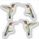 Os autocolantes de beija-flor que contêm cinco aves de caça com garganta rubi. O beija-flor arruinado (Archilochus colubris) é um pássaro minúsculo com uma esmeralda verde, máscara negra, coroa verde e garganta vermelha brilhante. Pode ser encontrado em matas abertas, bordas florestais, prados, prados, prados, e em parques, jardins e quintais onde eles visitam frequentemente alimentadores de beija-flores e flores em forma de tubo. Todas as imagens de pássaros são tiradas de pinturas originais de aquarela.