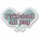 "Pickleball All Day" em uma fonte retrô rosa/roxa com pás de pickleball. O presente perfeito para jogadores de picleball.