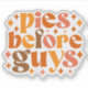 Esta design divertida e viscosa com tema de queda apresenta a frase brincalhona "Pies Before Cara" em uma fonte ousada e inspirada retroativamente. O texto é organizado em um layout compacto e empilhado com cada palavra em um estilo de fonte diferente, criando uma composição dinâmica e atraente. A paleta de cores inclui matizes de outono quentes como laranjas profundas, castanhos ricos e amarelos ouros, capturando perfeitamente as vibrações confortáveis da estação.