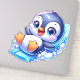 Um desenho animado muito bonito de um pinguim bebê sorrindo enquanto desliza um pouco de gelo. Este adesivo está disponível em muitos tamanhos, e cada tamanho tem um preço diferente. Os adesivos menores custam menos e assim por diante.