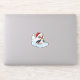 Um pinguim bonitinho está animado para celebrar o Natal. Ela está vestindo um chapéu de Papai Noel e chutando a neve enquanto ela desliza.
