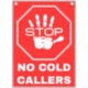 Assuma o controle de sua privacidade com este sinal de "Pare: Não Aceitamos Vendedores de Porta em Porta", projetado para deter solicitantes de forma educada, mas firme. O design ousado e vermelho e a letra clara tornam sua mensagem impossível de ser ignorada, reduzindo efetivamente as interrupções indesejadas em sua porta. Perfeito para sua porta da frente, janela ou caixa de correio, este adesivo é uma ferramenta simples, mas poderosa, para estabelecer limites claros. É uma maneira profissional de garantir um ambiente mais tranquilo, dando a você mais tempo para si e sua família. Desfrute de uma vida mais silenciosa sem o incômodo de visitas indesejadas.
