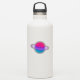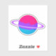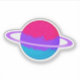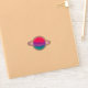 Arte digital de um planeta brilhante nas cores da bandeira androgina cercada por anéis como Saturno no no espaço.