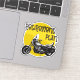 Plano de aposentadoria com adesivo engraçado gráfico de motocicleta com fundo amarelo.