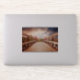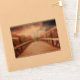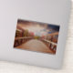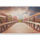 Decal de vinilo/adesivo de contorno com uma fotografia cênica. Uma ponte de madeira em direção a um caminho rodeado por árvores florestais mudando de cor.