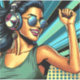 Pop, garota dançando música com fones de ouvido feitos em um estilo de banda desenhada, pop.