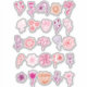 Pequenos rabiscos bonitos em rosa, vermelho e laranja.