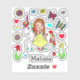 A princesa vermelha do conto de fadas, unicórnio, borboleta e autocolantes personalizados.