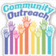 Belo design de alcance comunitário para que as comunidades ajudem seus cidadãos com programas de governo e sem fins lucrativos. Um giro arco-íris de mãos alcançando para ajudar os outros.