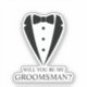 Torne o seu casamento inesquecível - Adicione um toque pessoal com um adesivo de proposta de padrinho de casamento com um terno de smoking preto e uma ilustração de gravata de arco, com o nome do padrinho de casamento e uma mensagem de proposta em uma fonte de serifa clássica. Também perfeito para o seu melhor homem, portador de anel, e muito mais!