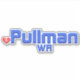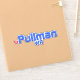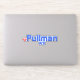 O adesivo Pullman WA com letras 3D azuis. Os nomes das cidades de Washington estão disponíveis em fundo branco e são transparentes.