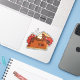 Uma fatia cartoonesa de torta de abóbora com camarão.