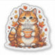 Celebre o seu amor pela especiaria de abóbora e os gatos adoráveis com este adesivo de outono aconchegante! Apresentando um doce gatinho segurando um lápide de abóbora, cercado por folhas do outono, é perfeito para decoração de laptop, garrafas de água ou revistas durante a estação do suéter.