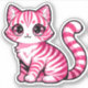 Adesivo Puramente Doce: Gato de Stripe Rosa e Branca