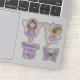 Two cute, ethereal fairies in purple dresses and flower crowns, an intricately detailed butterfly, and and a customizable fairy first sticker are included in this fairy party favor sticker collection.