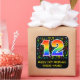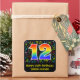Este design de adesivo divertido, vibrante e colorido com tema de aniversário apresenta um grande número "12" com um padrão inspirado no gradiente do espectro arco-íris, juntamente com a mensagem "Feliz 12 Aniversário", e um nome personalizado. Parte do fundo apresenta um padrão de várias notas e símbolos de música com várias cores e tamanhos. Os adesivos de aniversário divertidos e editáveis como este podem ser usados como decoração de comemorações de aniversário, ou talvez dados como presente de aniversário, ou talvez usados para embrulhar presentes de aniversário para celebrar o aniversário de um compositor de música, um músico, um cantor ou o aniversário de outro. [~Z0000423]