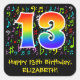 Adesivo Quadrado 13 Aniversário: Símbolos Musicais Coloridos, Rainb