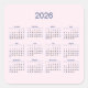 Adesivo Quadrado 2026 Yearly Calendar on Pale Pink