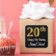 Este luxuoso, elegante e sofisticado design de adesivo quadrado com tema de aniversário apresenta um grande número ordinal "20", com uma aparência falsa/imitada de inspiração dourada, juntamente com a mensagem de saudação de aniversário "Feliz 20 de Aniversário", e um nome editável numa letra estilo script. O fundo é preto colorido. Os adesivos elegantes podem ser usados para embrulhar um presente ou presente em honra do vigésimo aniversário de alguém, ou talvez possam ser entregues aos convidados numa celebração de aniversário. [~Z0000517]
