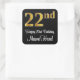 Adesivo Quadrado 22º Aniversário - Elegante Luxurioso Faux Dourado